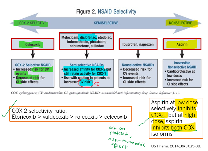* COX-2 selective has less AE of GI