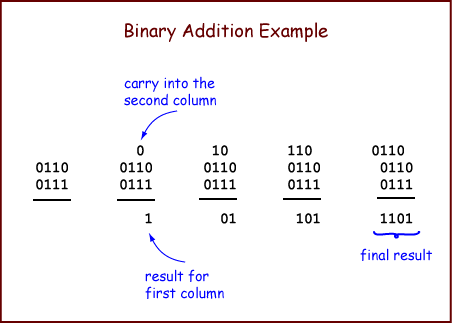 Base 2. Used by computers to represent all data and instructions. Uses 1s and 0s to powers of 2 to represent whole numbers. |