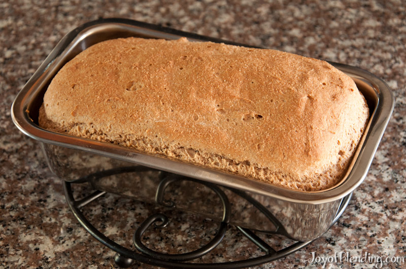 Deb, I did used red winter wheat that had been in the freezer for a day or so (recommended in the Vitamix Cookbook). Additionally, when I made this bread I did proof my regular (not fast rise) yeast first although I have never done that in the past when I made bread prior to my Vitamix. My loaf did “double” in size, but did not rise up and out of the pan. I did smooth the top with a wet spatula, and brushed it with egg white just before baking. I have been experimenting with adding other things and last week added shredded carrots and parmesan cheese. (add during the kneading portion through the hole in the top) and this week am adding a little dill at the same time I add the carrots and cheese. I love this bread recipe and it is so easy in the Vitamix. Good luck and I think Adam’s technical advise might explain what happened to your loaf.