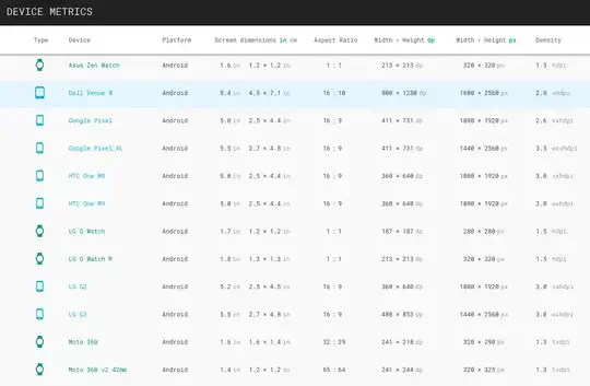 Based off this answer from Lucas Cerro I calculated the dimensions using the ratios in the Android docs, using the baseline in the answer. I hope this helps someone else coming to this post!