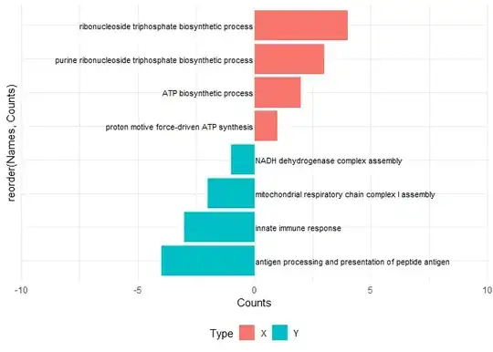 ggplot(df, aes(x=reorder(Names,Counts), y=Counts, fill=Type))+