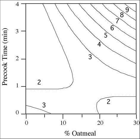 oatmeal levels of 3-12%, and precook times of 1.5-3 minutes. Greatest overall likeability occurred over