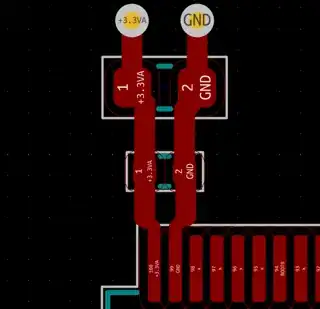 Is it better to have only two vias as shown on the first image, so that current "must" flow through both capacitors before reaching the pin (and that's where I might misunderstand how current flows, maybe I have an understanding of it that is too "directional"), or should I also add two vias next to the 0.1 µF capacitor (second image) which I believe could reduce the parasitic inductance but makes me think that some current not filtered by the 1µF cap comes directly from the power plane through the 0.1µF cap to the pin ?