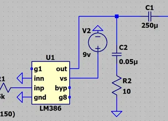 The above text can be copied into Notepad or some other text editor and then saved into a file residing in the SUB subdirectory within your LTspice file folders. Unless you edit the name in the .ASY file I provided above, then you must use the name "LM386.LIB" here. LTspice will look into the .ASY file to find the name of this file. If they don't match up, there will be a problem. If you don't like the name "LM386.LIB" and would prefer "LM386.MOD" then you can do that. But you will have to edit the .ASY file I earlier provided so that it also names the same file.