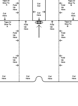 Stereoscopic viewing is achieved by placing an image pair one above one another. Special viewers are made for over/under format that tilt the right eyesight slightly up and the left eyesight slightly down. The most common one with mirrors is the View Magic. Another with prismatic glasses is the KMQ viewer.[27] A recent usage of this technique is the openKMQ project.[28]