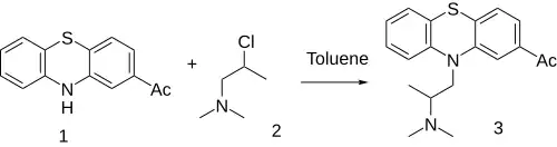2-Acetylphenothiazine [6631-94-3] (1) 2-Chloropropyldimethylamine [108-14-5] (2)