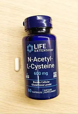 - ^ Dodd S, Dean O, Copolov DL, Malhi GS, Berk M (December 2008). "N-acetylcysteine for antioxidant therapy: pharmacology and clinical utility". Expert Opinion on Biological Therapy. 8 (12): 1955–1962. doi:10.1517/14728220802517901. PMID 18990082. S2CID 74736842.