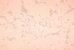 Actinobacillus is a genus of Gram-negative, nonmotile and non-spore-forming, oval to rod-shaped bacteria occurring as parasites or pathogens in mammals, birds, and reptiles.[1] It is a member of the family Pasteurellaceae.[2] The bacteria are facultatively anaerobic or aerobic, capable of fermenting carbohydrates (without production of gas), and of reducing nitrates. The genomic DNA contains between 40 and 47 mol % guanine plus cytosine.
