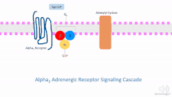 The alpha-2 blocker acts on alpha-2 receptors. The alpha-2 receptor is a G-protein coupled receptor as well, which exert its action by Gi function, leading to an inhibition of adenylyl cyclase and thus reducing synthesis of cAMP.[3]  It lowers the amount of calcium inside the cell.[3] Ultimately, release of noradrenaline and epinephrine will be inhibited and smooth muscles tend to dilate.[3] Alpha-2 blocker stops the downstream signaling pathway (inhibit adenylyl cyclase, reduce cAMP and Ca), thus lead to release of the mentioned neurotransmitters(noradrenaline and epinephrine) and contraction of smooth muscle eventually.[3]