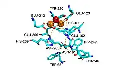 - ^ Berthold DA, Stenmark P (2003). "Membrane-bound diiron carboxylate proteins". Annual Review of Plant Biology. 54 (1): 497–517. Bibcode:2003AnRPB..54..497B. doi:10.1146/annurev.arplant.54.031902.134915. PMID 14503001.