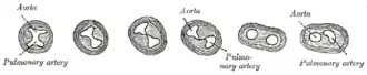1. ^ Kirby ML, Gale TF, Stewart DE (1983). "Neural crest cells contribute to normal aorticopulmonary septation". Science. 220 (4061): 1059–61. doi:10.1126/science.6844926. PMID 6844926.
