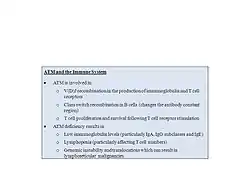 43. ^ Bredemeyer AL, Sharma GG, Huang CY, Helmink BA, Walker LM, Khor KC, Nuskey B, Sullivan KE, Pandita TK, Bassing CH, Sleckman BP (July 2006). "ATM stabilizes DNA double-strand-break complexes during V(D)J recombination". Nature. 442 (7101): 466–70. Bibcode:2006Natur.442..466B. doi:10.1038/nature04866. PMID 16799570. S2CID 4320129.