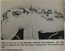 Babies on a cart at Manhattan Maternity and Dispensary in 1912