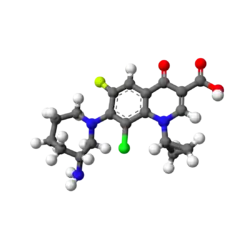 Besifloxacin (INN/USAN) is a fourth-generation fluoroquinolone antibiotic. The marketed compound is besifloxacin hydrochloride. It was developed by SSP Co. Ltd., Japan, and designated SS734. SSP licensed U.S. and European rights to SS734 for ophthalmic use to InSite Vision Incorporated (OTC Pink: INSV) in 2000. InSite Vision developed an eye drop formulation (ISV-403) and conducted preliminary clinical trials before selling the product and all rights to Bausch & Lomb in 2003.[1]