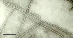 | TEM showing CPMMV particles in sap of symptomatic yardlong bean leaf. Bar = 100 nm | |