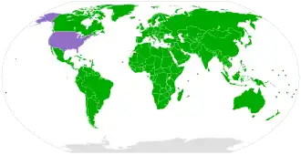 The Convention on Biological Diversity (CBD) came into force in 1993. It secured rights to control access to genetic resources for the countries in which those resources are located. One objective of the CBD is to enable lesser-developed countries to better benefit from their resources and traditional knowledge. Under the rules of the CBD, bioprospectors are required to obtain informed consent to access such resources, and must share any benefits with the biodiversity-rich country.[86] However, some critics believe that the CBD has failed to establish appropriate regulations to prevent biopiracy.[87] Others claim that the main problem is the failure of national governments to pass appropriate laws implementing the provisions of the CBD.[88] The Nagoya Protocol to the CBD, which came into force in 2014, provides further regulations.[89] The CBD has been ratified, acceded or accepted by 196 countries and jurisdictions globally, with exceptions including the Holy See and United States.[85]