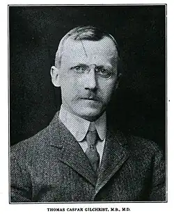Blastomycosis was first described by Thomas Caspar Gilchrist in 1894, as a skin disease. Because of this, blastomycosis is sometimes called "Gilchrist's disease".[17] Gilchrist initially identified the cause of the disease as a protozoan, but later correctly identified it as a fungus.[73] In 1898, he and William Royal Stokes published the first description of Blastomyces dermatitidis.[73] Gilchrist referred to the disease as "blastomycetic dermatitis".