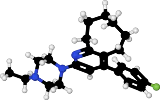 - ^ a b Suzuki K, Hiyama Y, Une T, Fujiwara I (November 2002). "Crystal structure of an antipsychotic agent, 2-(4-ethyl-1-piperazinyl)-4-(4-fluorophenyl)-5,6,7,8,9,10-hexahydrocycloocta[b]pyridine (blonanserin)". Analytical Sciences. 18 (11): 1289–1290. doi:10.2116/analsci.18.1289. PMID 12458724.