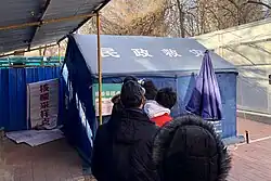 Starting on 26 January, all inter-provincial passenger transport and inter-provincial tour chartered vehicles entering and leaving Beijing were suspended;[16] Beijing's universities, middle schools, primary schools, and kindergartens were delayed;[17] offline training by off-campus training institutions was suspended;[18] and the Beijing Film Academy examination was postponed.[19] On the same day, the Beijing Municipal Health Commission notified 10 newly confirmed cases.[20] In addition, the Beijing Municipal Health Commission also notified people that three doctors had been infected, two of whom had been to Wuhan on business. They received isolation treatment.[21]