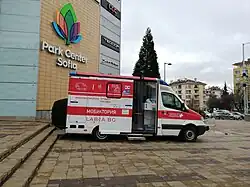 The first vaccination site in the country was opened on 15 December 2020, being located in Sofia.[205] On 5 January 2021, four mobile units were set up, so that elderly people living in care homes in Sofia could be vaccinated in their places of residence.[206] Over 40 such vaccination units were expected to cover the whole country.[205][207] By 20 September 2021, the mobile vaccination units had vaccinated 4274 people who were with impaired mobility or were residing in far flung or isolated places, with 3702 of them with a completed vaccination cycle.[208] As of 1 March 2022, a total of 25,604 people had been vaccinated by members of mobile units, with Burgas Province leading the way with 5648.[209]