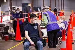 Free items included beer, pizza, crawfish, donuts, and french fries.[95][96][97] Some sports teams established partnerships to offer vaccine clinics at their venues on game days, with free tickets to games offered to those who use the clinics.[98][99] Free cannabis was available in Washington State when getting a vaccine at a dispensary.[100]