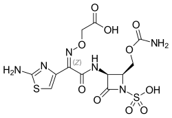 - ^ McNulty CA, Garden GM, Ashby J, Wise R (September 1985). "Pharmacokinetics and tissue penetration of carumonam, a new synthetic monobactam". Antimicrobial Agents and Chemotherapy. 28 (3): 425–7. doi:10.1128/aac.28.3.425. PMC 180266. PMID 4073864.