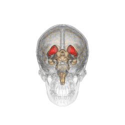Caudate nuclei along with other subcortical structures, in glass brain -