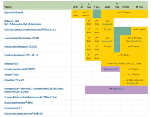 - ^ "Immunization Schedules". CDC. Retrieved 16 September 2014.