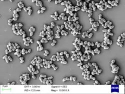 Corynebacterium glutamicum is a Gram-positive, rod-shaped bacterium that is used industrially for large-scale production of amino acids,[3][4] especially glutamic acid and lysine.[5] While originally identified in a screen for organisms secreting L-glutamate, mutants of C. glutamicum have also been identified that produce various other amino acids and derivatives of amino acids.[6]