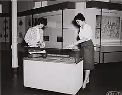 The leg bones have since been enclosed in a glass case[15] and have been reported as of 2014 to be one of the museum's most requested exhibits.[2] For a time in 2011, the bones were displayed at Fort Detrick,[11] but as of 2021 are again displayed at the National Museum of Health and Medicine.[9] The bones are attached to a wooden stand by metal prongs and are displayed next to a cannonball of the type that caused the wound.[12]
