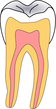 Dental sealants are a preventive treatment that is part of the minimal intervention dentistry approach to dental care.[9] These sealants are a plastic material placed in the pits and fissures (the recesses on the chewing surfaces) of primary (baby) or permanent (adult) molar and premolar teeth at the back of the mouth. These molar teeth are considered the most susceptible teeth to dental caries due to the anatomy of the chewing surfaces of these teeth, which inhibits protection from saliva and fluoride and instead favours plaque accumulation.[10] This approach facilitates prevention and early intervention, in order to prevent or stop the dental caries process before it reaches the ends stage of the disease, which is also known as the "hole" or cavitation of a tooth.[9] Once the tooth is cavitated, it requires a dental restoration in order to repair the damage, which emphasizes the importance of prevention in preserving teeth for a lifetime of chewing.