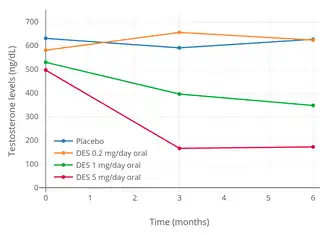 - ^ a b c Kent JR, Bischoff AJ, Arduino LJ, Mellinger GT, Byar DP, Hill M, Kozbur X (May 1973). "Estrogen dosage and suppression of testosterone levels in patients with prostatic carcinoma". J. Urol. 109 (5): 858–60. doi:10.1016/s0022-5347(17)60564-0. PMID 4699685.
