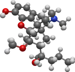 - ^ a b Bentley KW, Hardy DG (June 1967). "Novel analgesics and molecular rearrangements in the morphine-thebaine group. 3. Alcohols of the 6,14-endo-ethenotetrahydrooripavine series and derived analogs of N-allylnormorphine and -norcodeine". Journal of the American Chemical Society. 89 (13): 3281–92. doi:10.1021/ja00989a032. PMID 6042764.