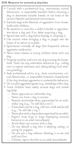48. ^ American Veterinary Medical Association Task Force on Canine Aggression and Human-Canine Interactions. A community approach to dog bite prevention. J Am Vet Med Assoc. 2001; 218: 1732–1749