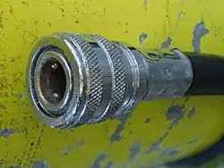 There are two types of low-pressure hose connections commonly used for suit inflation. These are the standard Seatec style quick release coupler, fitted with an internal Schrader valve, as also used on most diving buoyancy compensators, and the CEJN connector which allows a higher flow rate due to a larger bore through the non-return valve in the connector. This valve can allow a dangerously fast inflation rate if it jams open, and is also more likely to free-flow when disconnected. These hose connectors use incompatible valve fittings, but it is usually possible to swap the fitting on the inflator valve to accept the alternative hose end fitting. Both types of BCD and dry suit low pressure inflator hoses are supplied with a standard fitting for connection to a scuba regulator first stage low-pressure port.[39][1]: Ch5