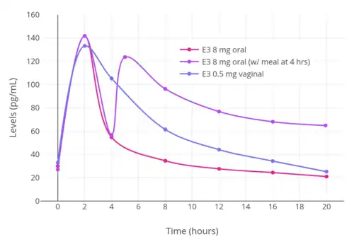 | Elimination half-life | Oral: 5–10 hours[9][8] IM: 1.5–5.3 hours (as E3)[5] IV: 20 minutes (as E3)[10][11] |