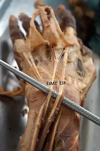 2. ^ a b Yalçin, Bülent; Kutoglu, Tunç; Ozan, Hasan; Gürbüz, Hülya (Mar 2006). "The extensor indicis et medii communis". Clinical Anatomy. 19 (2): 112–114. doi:10.1002/ca.20173. ISSN 0897-3806. PMID 16283647.