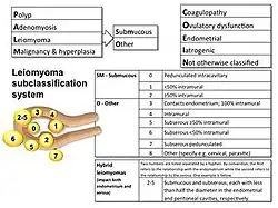 - ^ a b Munro MG; Critchley HO; Broder MS; Fraser IS (2011). "The FIGO Classification System ("PALM-COEIN") for causes of Abnormal Uterine Bleeding in Non-gravid Women in the Reproductive Years, Including Guidelines for Clinical Investigation". International Journal of Gynaecology and Obstetrics. 113 (1): 3–13. doi:10.1016/j.ijgo.2010.11.011. PMID 21345435. S2CID 205260568.