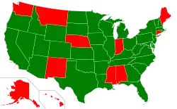 In the United States, FGM was criminalised federally in 1996 and in 17/50 states during 1994–2006.[8] However, the federal law criminalising FGM was declared unconstitutional by a Michigan court in November 2018, mostly because the judge found that the federal government did not have the authority to legislate on the issue, and that the U.S. states should.[12] At the time of the ruling, 27 states had specifically criminalised FGM,[12] and the court case stimulated the other states to do so as well, both during[12] and after the trial.[13] By March 2020, the practice was illegal in 35/50 states;[3] by May 2020, FGM was banned in 38/50 U.S. states.[14] On 5 January 2021, the STOP FGM Act of 2020 was enacted, which considers FGM 'a form of child abuse, gender discrimination, and violence', empowering federal authorities to prosecute people who 'carry out or conspire to carry out FGM' and increasing the maximum prison sentence from 5 to 10 years. This replaced the 1996 law that was declared unconstitutional in 2018. At the time of signing, 11 out of the 50 U.S. states still had no state ban on FGM.[15] By August 2023, 41 states had specific laws against FGM.[16]