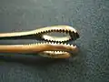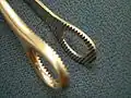 A foerster clamp is a surgical clamp with a round eyelet.[1] Also known as a sponge clamp, or sponge stick. Used for atraumatically grasping lung tissue in thoracic surgery. When grasping a surgical sponge in the jaws, Foerster clamps are commonly used for removing small amounts of fluids from the operative area and applying pressure to sites of bleeding.[1] May also be used for tissue dissection. Invented by David William Foerster of Oklahoma City, Oklahoma, who pioneered sex change operations in the United States.