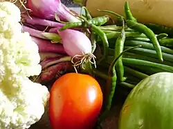 • Vegetables, sometimes categorized with fruit and occasionally inclusive of legumes, is typically a large category second only to grains, or sometimes equal or superior to grains, in nutrition guides.[4][5][6] Examples include spinach, carrots, onions, and broccoli.