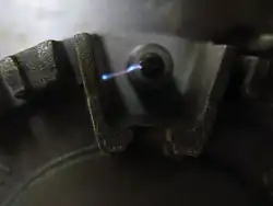 Gas stoves today use two basic types of ignition sources, standing pilot and electric.[21] A stove with a standing pilot has a small, continuously burning gas flame (called a pilot light) under the cooktop.[21] The flame is between the front and back burners. When the stove is turned on, this flame lights the gas flowing out of the burners. The advantage of the standing pilot system is that it is simple and completely independent of any outside power source. A minor drawback is that the flames continuously consume fuel even when the stove is not in use.[21] Early gas ovens did not have a pilot. One had to light these manually with a match. If one accidentally left the gas on, gas would fill the oven and eventually the room. A small spark, such as an arc from a light switch being turned on, could ignite the gas, triggering a violent explosion. To prevent these types of accidents, oven manufacturers developed and installed a safety valve called a flame failure device for gas hobs (cooktops) and ovens. The safety valve depends on a thermocouple that sends a signal to the valve to stay open. Although most modern gas stoves have electronic ignition, many households have gas cooking ranges and ovens that need to be lit with a flame. Electric ignition stoves use electric sparks to ignite the surface burners.[21] This is the "clicking sound" audible just before the burner actually lights. The sparks are initiated by turning the gas burner knob to a position typically labeled "LITE" or by pressing the 'ignition' button. Once the burner lights, the knob is turned further to modulate the flame size. Auto reignition is an elegant refinement: the user need not know or understand the wait-then-turn sequence. They simply turn the burner knob to the desired flame size and the sparking is turned off automatically when the flame lights. Auto reignition also provides a safety feature: the flame will be automatically reignited if the flame goes out while the gas is still on—for example by a gust of wind. If the power fails, surface burners must be manually match-lit.