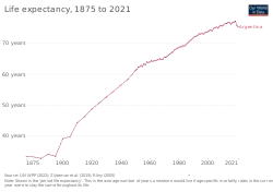 For the first half of the 20th century Argentina and Uruguay had the most advanced standards of medical care in Latin America.[1] Argentina's current healthcare system was created during a time of strong economic growth in the nation. This economic reform was completed during the urbanization, industrialization, and labor movement eras of the 1940s to 1950s. Since that time, Argentina's healthcare system has been extensively decentralized and privatized to provide support at the provincial level.[2]