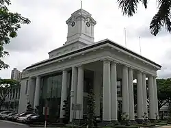 Stamford Raffles arrived in Singapore in January 1819, with a single accompanying doctor, a sub-assistant surgeon named Thomas Prendergast, then the medical officer in Penang's General Hospital.[7]: 12 After a treaty was signed allowing the British East India Company to set up a trading post in Singapore, Prendergast oversaw the newly established post's medical needs until William Montgomerie arrived and served as Singapore's first surgeon.[8] Prendergast, as a military doctor, was put in charge of the first General Hospital on the island — a small shed erected near the junction of Bras Basah Road and Stamford Road in 1821.[7]: 12