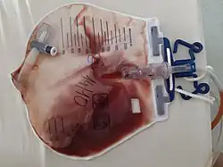 Hematuria or haematuria is defined as the presence of blood or red blood cells in the urine.[1] "Gross hematuria" occurs when urine appears red, brown, or tea-colored due to the presence of blood. Hematuria may also be subtle and only detectable with a microscope or laboratory test.[2] Blood that enters and mixes with the urine can come from any location within the urinary system, including the kidney, ureter, urinary bladder, urethra, and in men, the prostate.[3] Common causes of hematuria include urinary tract infection (UTI), kidney stones, viral illness, trauma, bladder cancer, and exercise.[4] These causes are grouped into glomerular and non-glomerular causes, depending on the involvement of the glomerulus of the kidney.[1] But not all red urine is hematuria.[5] Other substances such as certain medications and some foods (e.g. blackberries, beets, food dyes) can cause urine to appear red.[5] Menstruation in women may also cause the appearance of hematuria and may result in a positive urine dipstick test for hematuria.[6] A urine dipstick test may also give an incorrect positive result for hematuria if there are other substances in the urine such as myoglobin, a protein excreted into urine during rhabdomyolysis. A positive urine dipstick test should be confirmed with microscopy, where hematuria is defined by three or more red blood cells per high power field.[6] When hematuria is detected, a thorough history and physical examination with appropriate further evaluation (e.g. laboratory testing) can help determine the underlying cause.[1]