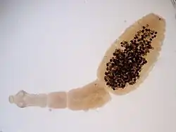Of the worms, the cestode Echinococcus granulosus, also known as the dog tapeworm, infects the liver and forms characteristic hepatic hydatid cysts.[35] The liver flukes Fasciola hepatica and Clonorchis sinensis live in the bile ducts and cause progressive hepatitis and liver fibrosis.[35]