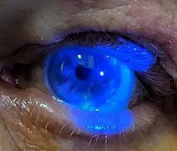 Herpes zoster ophthalmicus as seen after fluorescence staining using cobalt blue light