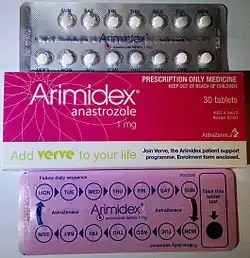 Letrozole and anastrozole are aromatase inhibitors which have been shown to be superior to tamoxifen for the first-line treatment of breast cancer in postmenopausal women.[1] Exemestane is an irreversible "aromatase inactivator" which is superior to megestrol acetate for treatment of tamoxifen-refractory metastatic breast cancer, and does not appear to have the osteoporosis-promoting side effects of other drugs in this class.[1]