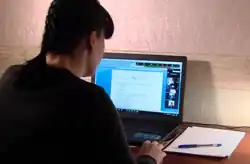 Online learning has become a critical lifeline for education, as institutions seek to minimize the potential for community transmission.[104][105] Technology can enable teachers and students to access specialized materials well beyond textbooks, in multiple formats and in ways that can bridge time and space.[101] Digital media in education can take many forms, including high-tech solutions such as tablet-based adaptive learning software or low-tech solutions such as radio, sms, and instructional television.[106][107] Teachers may operate in dual mode, teaching local and remote learners simultaneously.[108][109]
