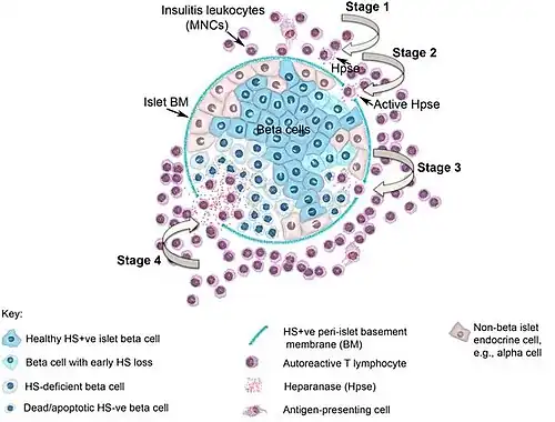 | Causes | Immune cell infiltration in islets of langerhans[2] |